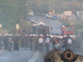 Τρεις αστυνομικοί τραυματίστηκαν, ο ένας στο μάτι, σύμφωνα με τη μαρτυρία του δημάρχου Λευκίμμης, Σπύρου Γατσούλη, στη Zougla.gr.